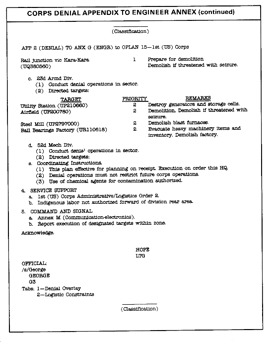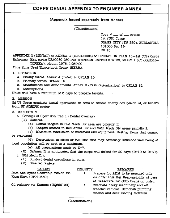 CORPS DENIAL APPENDIX TO ENGINEER ANNEX