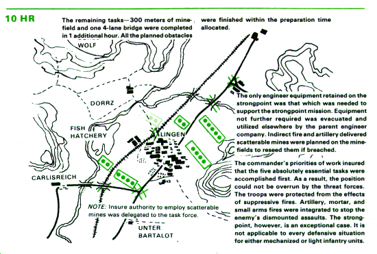 In addition to the five essential engineer tasks, the following tasks are also performed for this strongpoint. The tactical commander could vary these additional tasks as the situation changes.