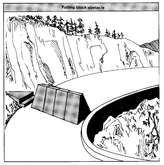 Varying types of preconstructed, obstacles are found in Korea, the majority being the falling block type. These are large concrete blocks suspended above or beside the roadway. Demolitions are stored nearby to blow the concrete block supports when the appropriate alert measure has been received and the tactical situation permits. Preconstructed obstacles are the responsibility of the Korean Government to construct, and the Republic of Korea (ROK) Army to maintain and execute.