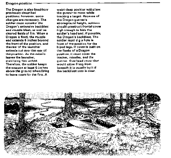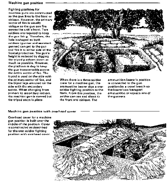 While it is desirable for a fighting position to give maximum protection to personnel and equipment, primary consideration is always given to effective weapon use. In offensive combat operations, weapons are sited wherever natural or existing positions are available, or where weapon emplacement is made with minimal digging.