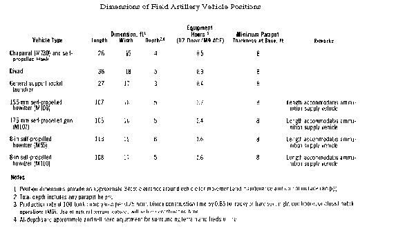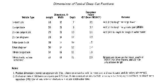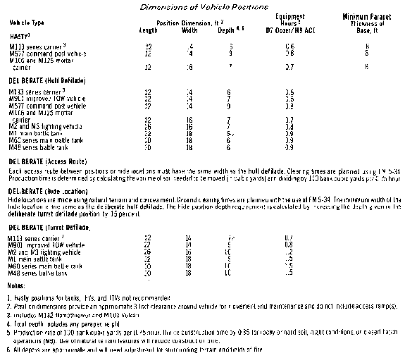 Success on the battlefield requires maneuver among fighting positions between main gun firings. Maximum use of wadis, reversed slope hills, and natural concealment is required to conceal fighting vehicles maneuvering among fighting positions. After a major weapon system fires its main gun, the vehicle and gun usually must maneuver concealed to another position before firing again. If the major weapon system immediately reappears in the old position, the enemy will know where to fire their next round. The table summarizes dimensions of the hasty and deliberate vehicle positions discussed in the following paragraphs. Construction planning factors for vehicle fighting positions are shown in the table.