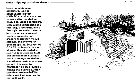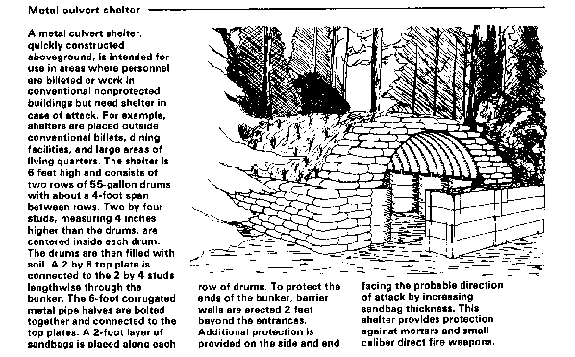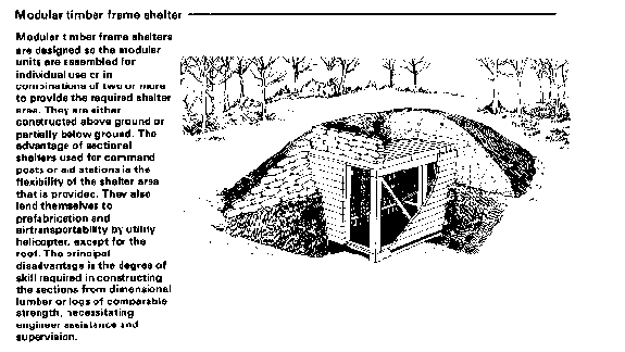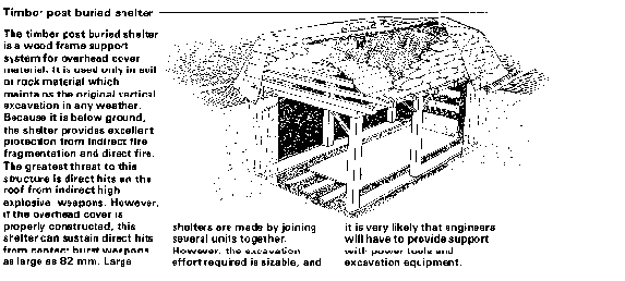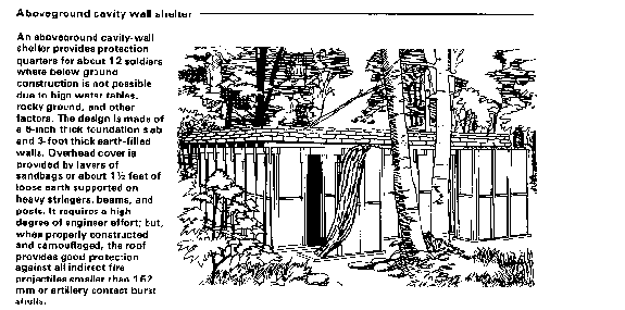 Cut-and-cover shelters are partially dug into the ground and backfilled on top with as thick a layer of cover material as possible. These shelters provide excellent protection from the weather and enemy action.
