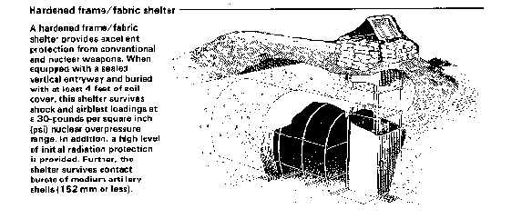 Below ground shelters require the most construction effort but generally provide the highest level of protection from conventional, nuclear, and chemical weapons.