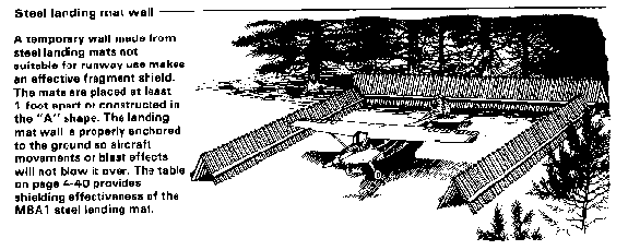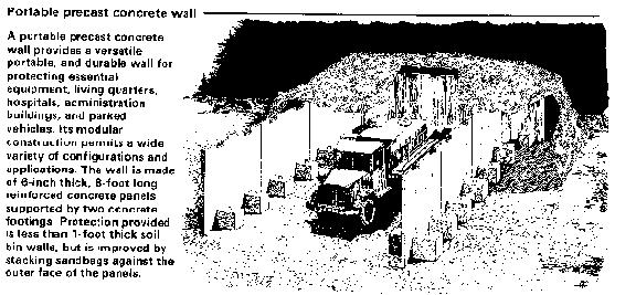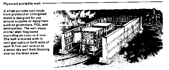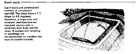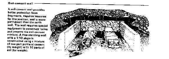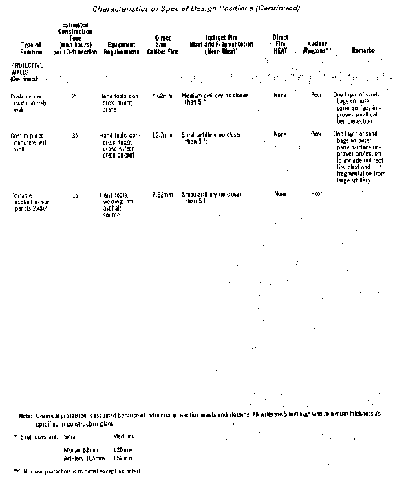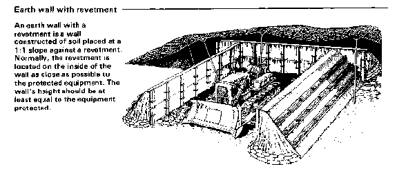 Protection provided by the walls is restricted to stopping fragment and blast effects from near-miss explosions of mortar, rocket, or artillery shells; some direct fire protection is also provided. Overhead cover is not practical due to the size of the position surrounded by the walls. In some cases, modification of the designs shown will increase nuclear protection. The wall's effectiveness substantially increases by locating it in adequately-defended areas. The walls need close integration with other forms of protection such as dispersion, concealment, and adjacent fighting positions. The protective walls should have the minimum inside area required to perform operational duties. Further, the walls should have their height as near to the height of the equipment as practical.